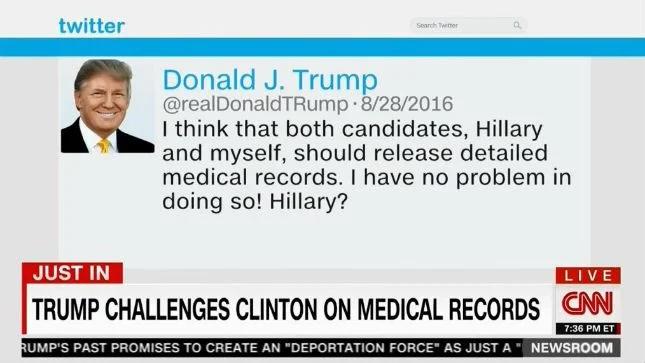 Donald Trump sent out a tweet in which he asked Hillary Clinton to release her medical records and said he would do the same.