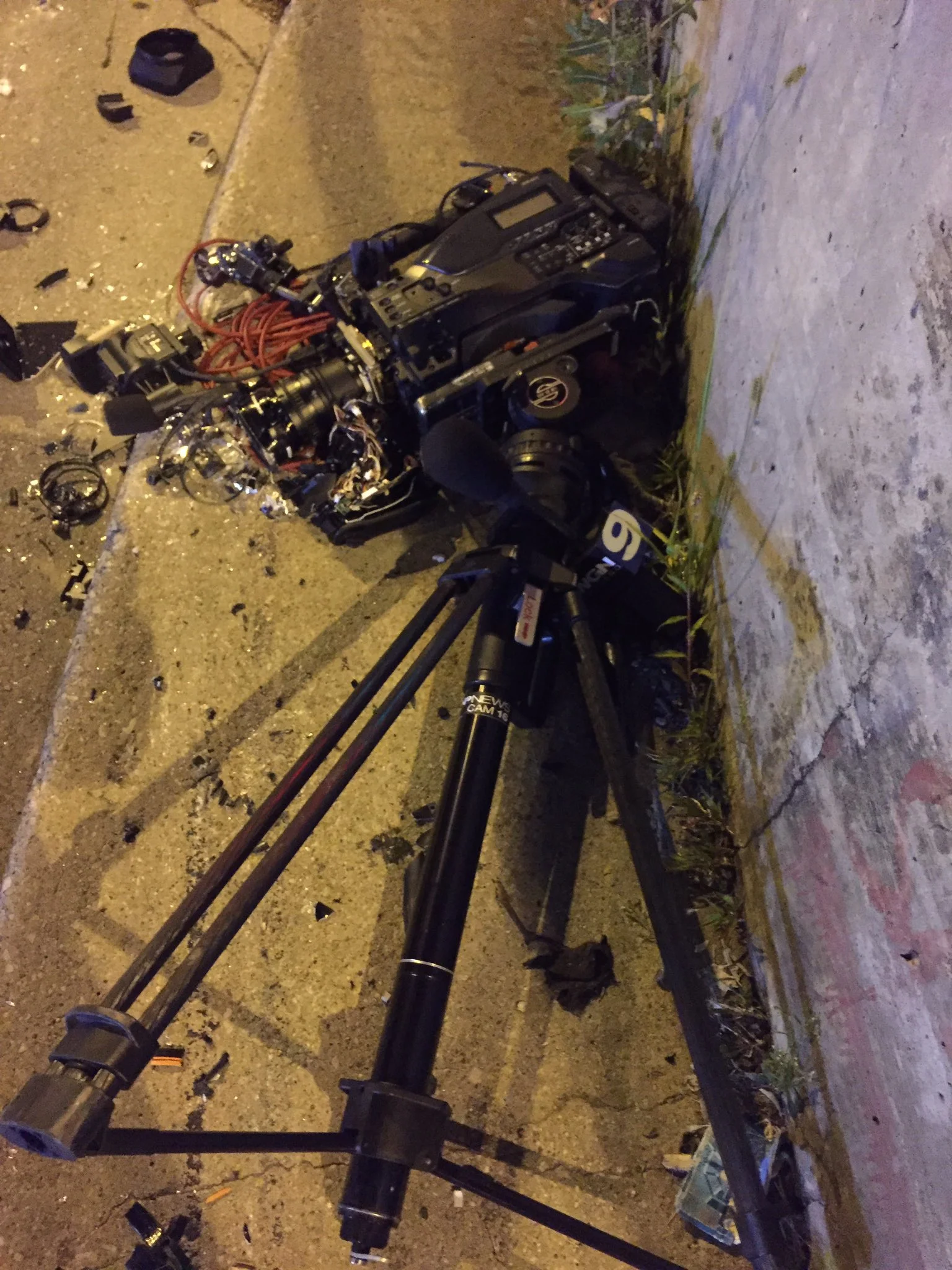 While working the story in Forest Park, a truck driver ran-over the WGN camera. Luckily the Photog was not hurt.