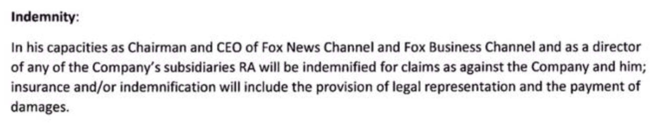If you look at the leaked separation agreement, between Ailes and Fox, it shows that Fox would have to pay all of Ailes' legal bills and any monetary rewards to Carlson.